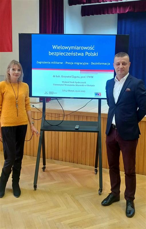 23 października, gościliśmy dr. hab. Krzysztofa Żęgotę z Wydziału Nauk Społecznych UWM, który poprowadził ciekawą prelekcję pt. „Wielowymiarowość bezpieczeństwa Polski” dla uczniów starszych klas naszego liceum. 🎯 Kluczowe zagadnienia: Zagrożenia militarne w kontekście wojny na Ukrainie Presja migracyjna jako narzędzie wojny hybrydowej Dezinformacja i rosyjskie narracje historyczne Operacja Śluza i instrumentalizacja migrantów Szczególnie cenny był wątek walki z fake newsami.