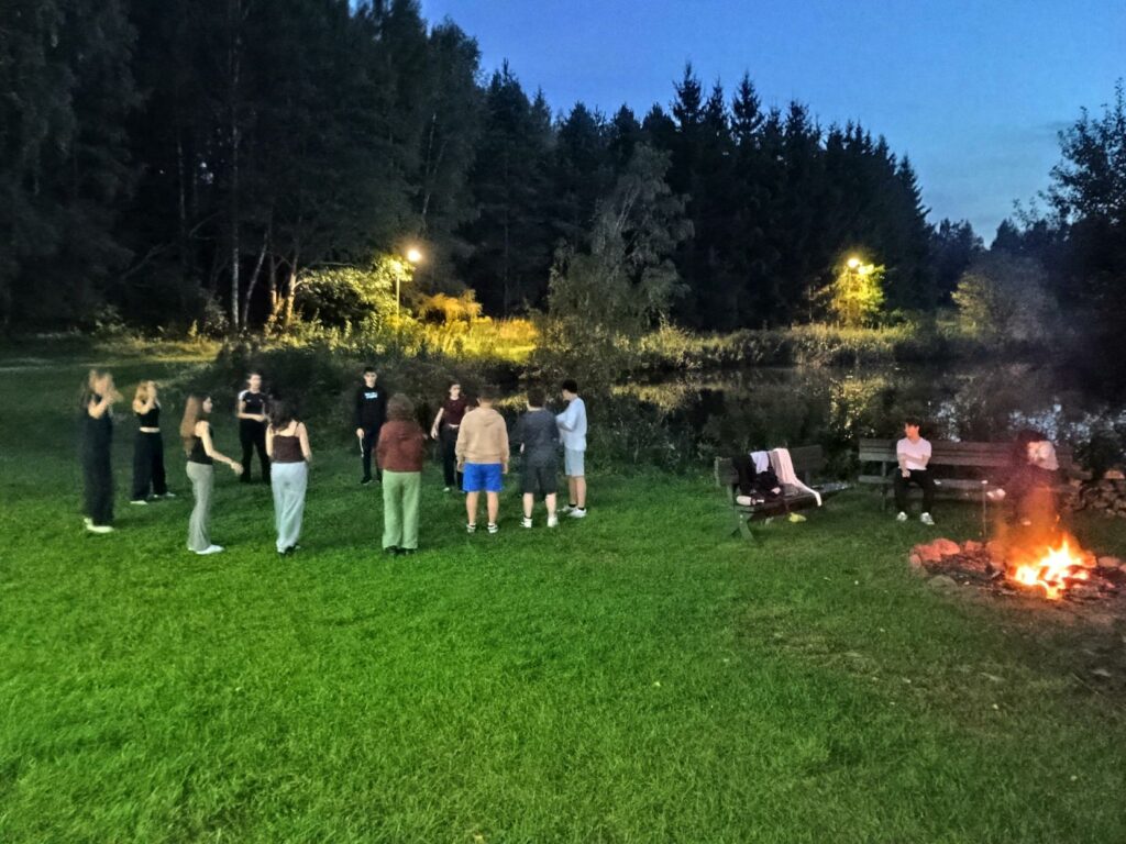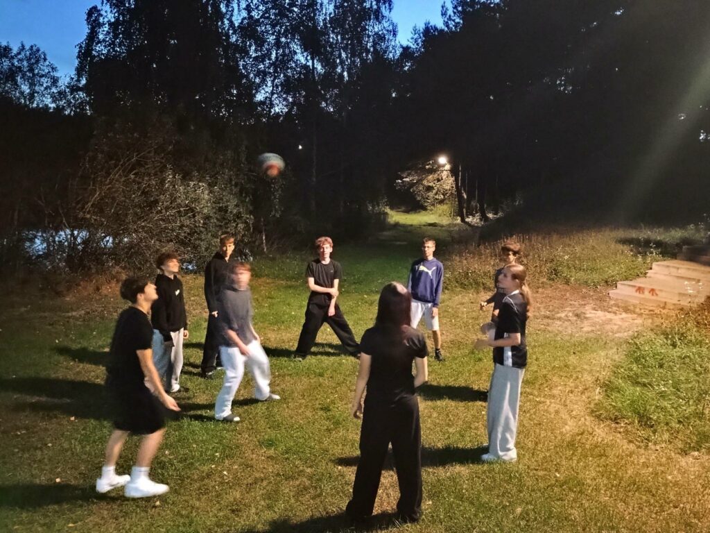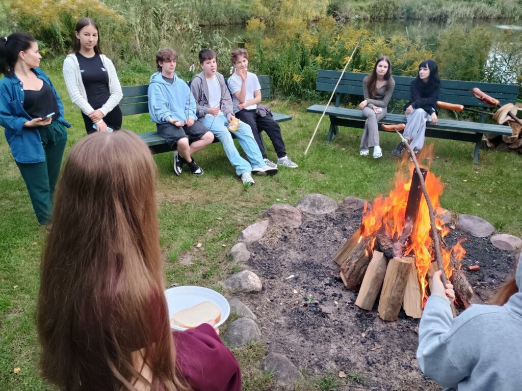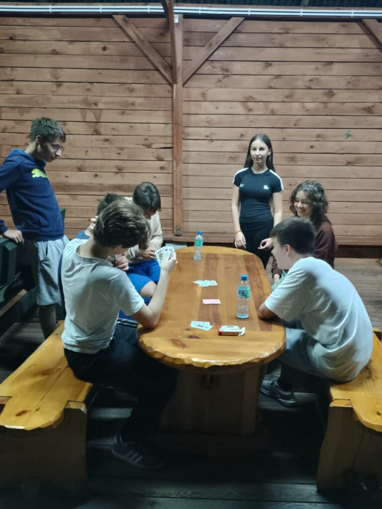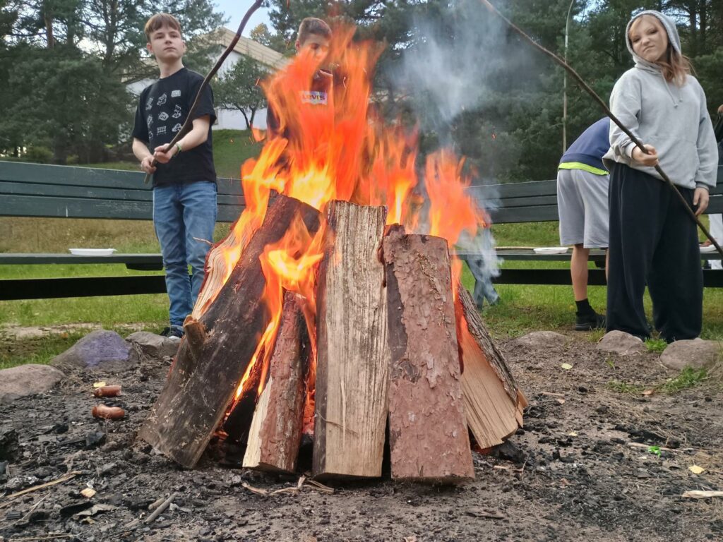 Wieczorami młodzież piekła kiełbaski, ziemniaki i pianki 🍡. Wspólne tańce 💃🕺, rozmowy, gry planszowe 🎲 i spacery nad jeziorem sprawiły, że uczniowie naprawdę poznali się i zintegrowali.