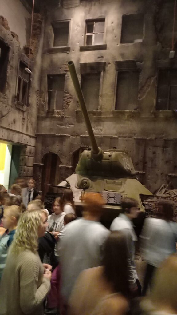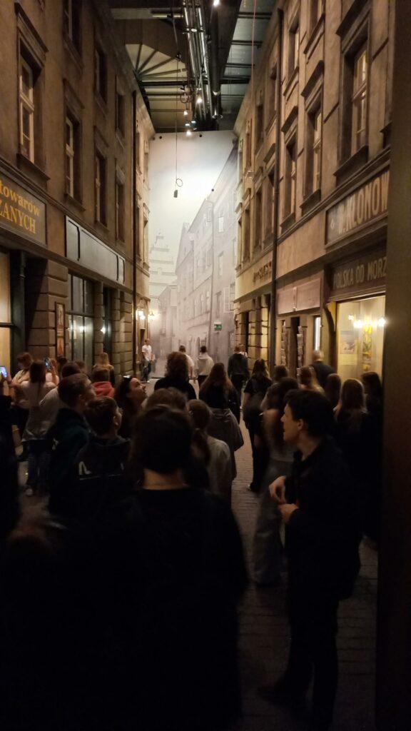 Nasza wyprawa zaczęła się w wyjątkowej atmosferze – w zrekonstruowanej sali szkolnej z dwudziestolecia międzywojennego. Pan Adam, nasz przewodnik, nie tylko pokazywał eksponaty. On opowiadał historie. Historie zwykłych ludzi, którzy pewnego dnia obudzili się w świecie ogarniętym wojną.
