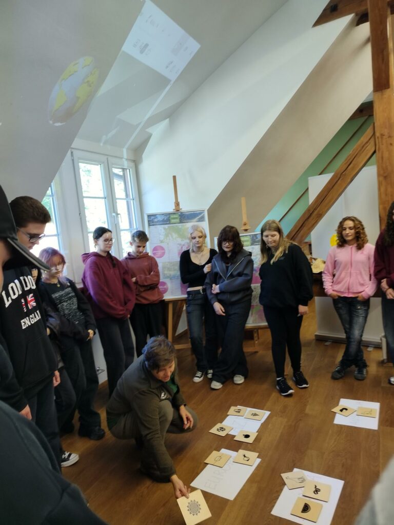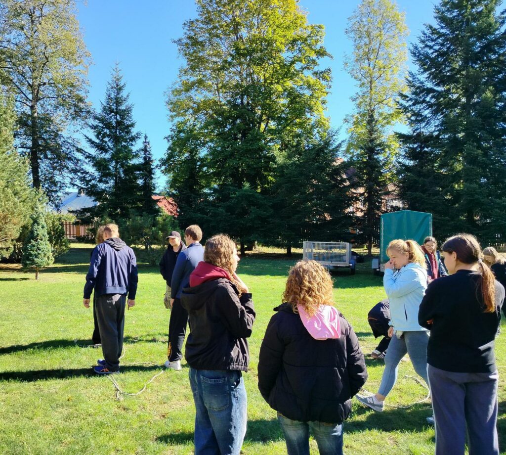Dzień rozpoczęliśmy od warsztatów ekologicznych – poznawaliśmy lokalne ekosystemy i zasady zrównoważonego rozwoju. Teoria szybko przeszła w praktykę: podczas zajęć terenowych uczniowie prowadzili obserwacje przyrodnicze i pracowali z mapą jak prawdziwi leśnicy.