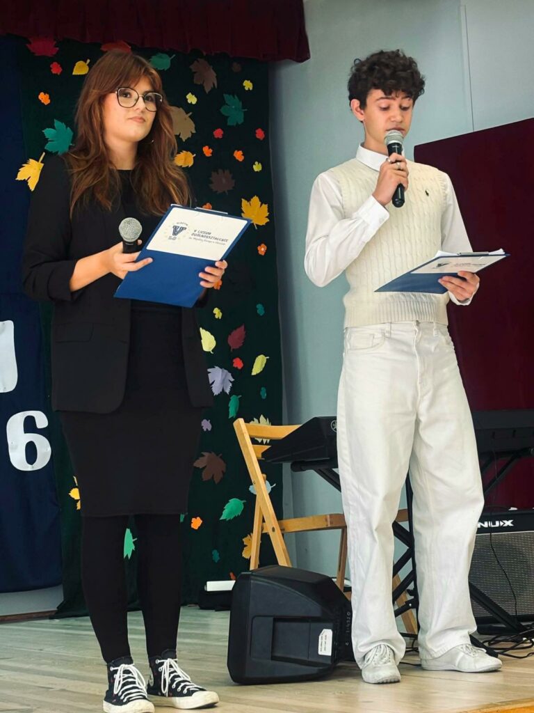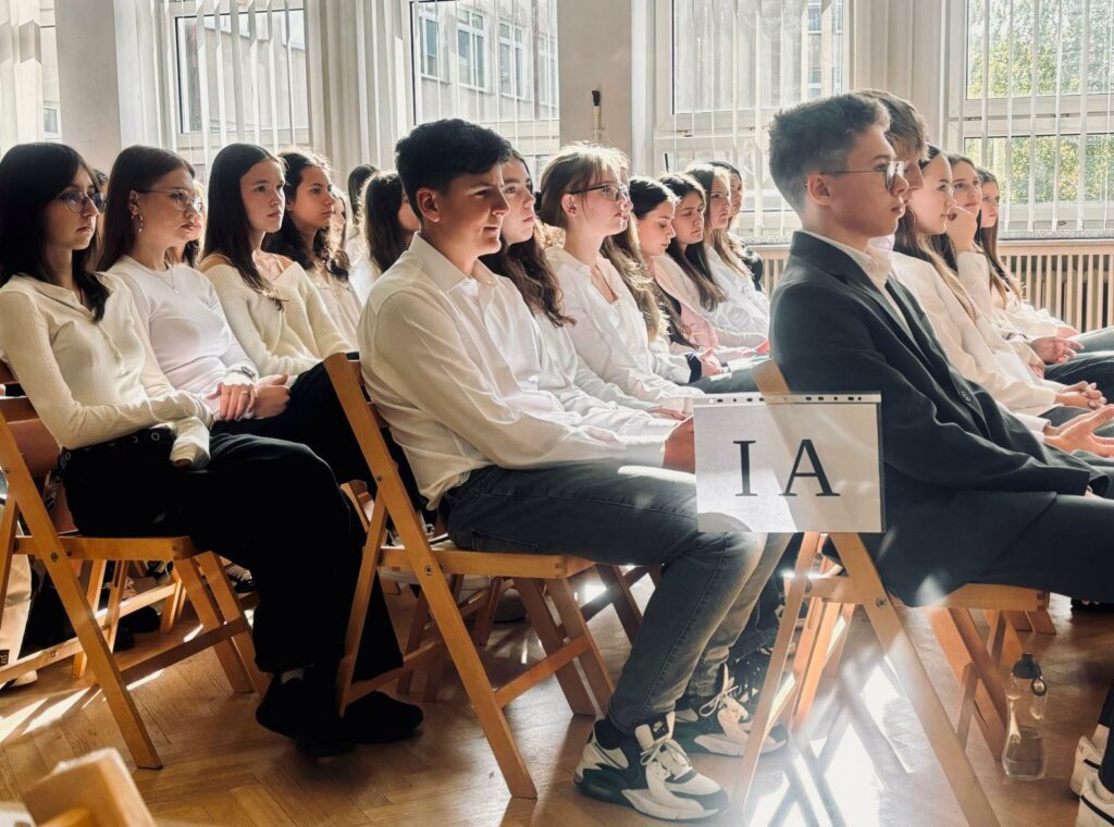 Po oficjalnym ślubowaniu każda z klas 1 miała swoją chwilę w blasku reflektorów! Na scenie zobaczyliśmy programy artystyczne, które oddały zarówno specyfikę ich rozszerzeń (biol-chem, mat-fiz-ang i inne), jak i indywidualne talenty każdego ucznia! Od matematycznych zagadek po artystyczne performance – każda klasa pokazała, że ma swój unikalny charakter i energię!